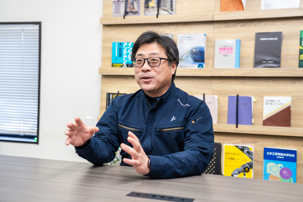 特に自社内製化しているICT施工に関して能力の高い人が多く、同業他社のICT業務に対し支援できるなど高い技術力を備える技術者集団です。経験先行となっている現状を変えたく、自主的に勉強会に参加するなど前向きな姿勢が気持ちの良い社員が多いですね。